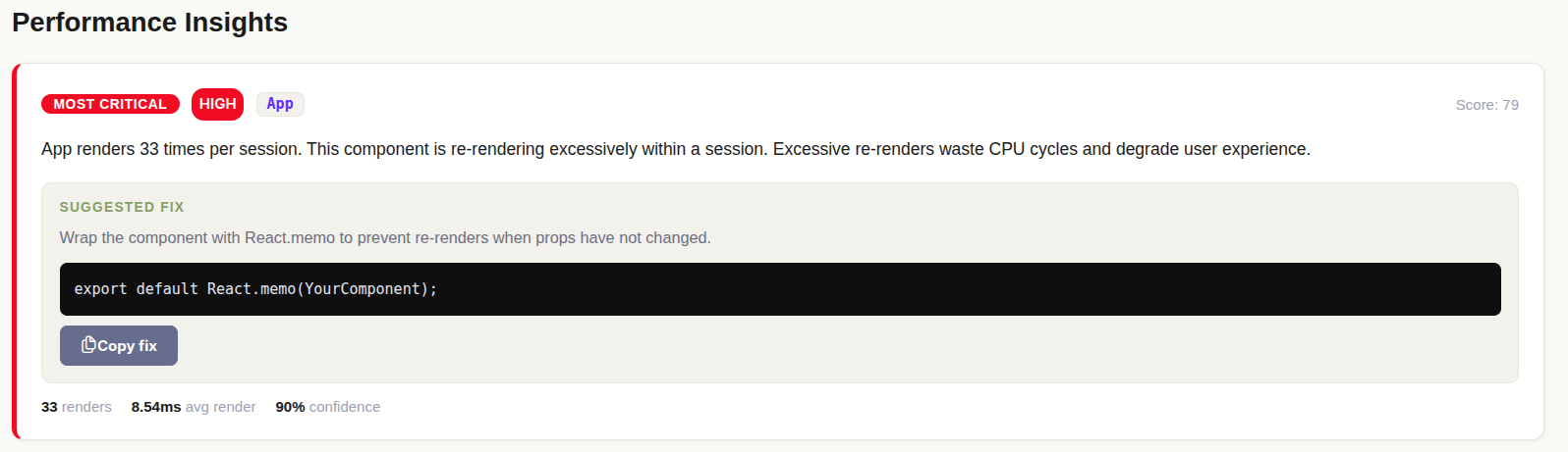 Gemini-powered insights that explain WHY your component is slow and generate a tailored fix.